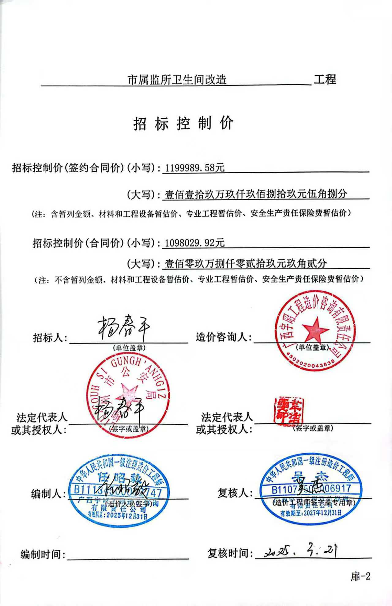 市属监所卫生间改造(重)采购项目的潜在供应商应在广西政府采购云平台(******)获取采购文件,并于2025年11月14日 09:20(北京时间)前提交响应文件。